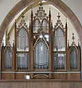 3 Manuale, 88 Ranks, 59 Register (+ 4 Tr.) 1925 erbaut im alten Gehäuse von ca. 1850 von W.Sauer (D, Frankfurt/Oder) 1926-1927 Erweiterung um 10 Register durch Sauer 1945 leichte "Barockisierung" durch Umstellung von Pfeifen, jedoch keine gravierenden Eingriffe in der Substanz 1998-1999 beginnende Renovierung der Orgel und Spielbarmachung von zunächst 11 Registern durch Sauer 2000-2001 Reinigung und Restaurierung weiterer Register - rund 1/3 der Orgel ist nun wieder spielbar 2009-2011 Restaurierung auf den Zustand von 1927 durch Reinhard Hüfken (D, Halberstadt) |