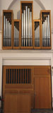 Spieltisch und Orgelprospekt perspektivisch Photo: © Martin Doering