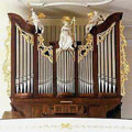 2 Manuale, 54 Ranks, 39 Register, 2.770 Pfeifen 1914 erbaut im Gehäuse von 1783 von Rudolf Kiene (D, Waldkirch) 1983 technischer Neubau im restaurierten Gehäuse von 1783 unter Widerverwendung von 31 Registern der Vorgängerorgel durch Mönch (D, Überlingen) - neue Register mit * markiert, alle anderen sind von 1914 Mechanische Spieltraktur, elektrische Registertraktur mit 5 mechanischen Setzerkombinationen |