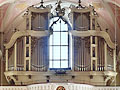 3 Manuale, 53 Ranks, 35 Register 1974 erbaut im Gehäuse von 1780 durch Steinmeyer (D, Oettingen) - nur wenige gut erhaltene Pfeifen der Vorgängerorgeln wurden wiederverwendet 2007-2008 Generalüberholung, Einbau zweier bis dato geplanter Register, Neuintonation und einbau eines Setzers durch Hasselt (D, Wassertrüdingen) Schleifladen mit mechanischer Spieltraktur und elektrischer Registertraktur mit 4.000 Setzerkombinationen, Tutti Vorgängerorgeln: 1780 erbaut von Gessinger (D, Rothenburg) 1887 und 1911 Umbau durch Bittner (D, Eichstätt) |
