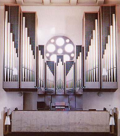 I. Oberwerk | C-g''' | 10 (7) | II. Hauptwerk | C-g''' | 15 (9) | III. Schwellwerk | C-g''' | 9 (9) | Pedal | C-f' | 15 (10) | |||||||||||