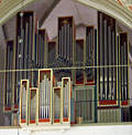4 Manuale, 67 Ranks, 45 Register 1974-1975 erbaut von Paul Ott (D, Göttingen) 1998-1999 Renovierung und Einbau von 3 neuen Zungen im Schwellwerk sowie Einbau von Setzern durch Westfälischer Orgelbau Siegfried Sauer (D, Höxter) 2015 umfassende Restaurierung und Ersatz von 4 Registern durch Hans-Ulrich Erbslöh (D, Hamburg) Mechanische Spieltraktur, elektrische Registertraktur, elektrische Koppeln, Computersetzer mit Sequenzer, Crescendowalze Die Marienkirche verfügt außerdem über eine separate Schwalbennestorgel mit 29 Ranks / 19 Registern auf 2 Manualen und Pedal (Scherer 1613 / West 2010) |