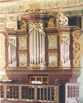 2 Manuale, 22 Ranks, 18 Register 1697-1698 erbaut mit 12 Registern und angehängtem Pedal von Arp Schnitger - erhaltene Register mit "S" markiert 1742-1744 Erweiterung um ein selbstständiges Pedal durch Eilert Köhler - erhaltene Register mit "K" markiert 1838 Umbau durch J.G. Schmid 1998-1999 Restaurierung durch Alfred Führer (D, Wilhelmshaven) Schleifladen mit mechanischer Spiel- und Registertraktur, Stimmung ungleichstufig, 1/2 Ton über normal + Tremulant (auf das ganze Werk) |