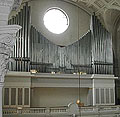 3 Manuale, 80 Ranks, 63 Register (+ 6 Ext. + 1 Sonst.), ca. 4.200 Pfeifen 1915 erbaut von Albert Moser und Leopold Nenninger - erhaltene Register mit "M" markiert 1944 beschädigung im 2. Weltkrieg 1955 technischer Neubau mit 38 Registern auf 2 Manualen durch Anton Schwenk unter Wiederverwendung von 22 Registern der Vorgängerorgel - erhaltene Register mit "S" martkiert 1962-1967 geringfügige Modufikationen durch Stöberl - erhaltene Register mit "St" martkiert 1995 und 2002 Umbau und Erweiterung durch Johannes Führer (D, München) - erhaltene Register mit "F" markiert 2018-2020 Generalrenovierung und Erweiterung durch Kaps (ED, Eichenau) und Klais (D, Bonn) - neue Register mit "K" markiert Elektrische Traktur mit 26 x 20 x 1.000 Setzerkomnbinationen, programmierbares Crescendo, programmierbare Koppeln und Mixturen (über Schubladen-Touchscreen), Sostenuto, Registerfessel, Bass-, Melodie-, Extra- und Pizzikatokoppeln, Transponiereinrichtung, Loop-Recoder / Sequenzer, MIDI, Teilung Flöten- und zungenreihe im Auxiliar mit differenzierten Aufteilungsmögl. auf Manuale / Pedal |