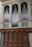 3 Manuale, 54 Ranks, 41 Register (+ 1 Ext.) 1984 erbaut von Winfried Albiez (D) 3 weitere Register (4 Ranks) geplant Die Kirche besitzt außerdem eine separate Hauptorgel mit 79 Ranks / 57 Registern (+ 1 Ext. + 1 Tr.), (Steinmeyer, 1952) |
