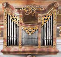 1 Manual, 13 Ranks, 11 Register Um 1750 erbaut von einem unbekannten Orgelbauer (erhaltene Register mit * gekennzeichnet) 1804 Umsetzung der Orgel nach Hellmonsödt (Österreich) Um 1850 Umbau durch Joseph Breinbauer 1996 Rückführung und Restaurierung durch Wolfgang Eisenbarth (D, Passau) Die Orgel wurde optisch als "Rückpositiv" vor die Hauptorgel platziert, ist aber eine eigenständige Orgel Die Klosterkirche verfügt außerdem über eine separate Hauptorgel mit 34 Ranks / 20 Registern auf 2 Manualen und Pedal (Egedacher 1732 / Kuhn 2009) |
