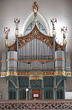 3 Manuale, 70 Ranks, 51 Register (+ 1 Ext.) 1910 erbaut mit 30 Registern von Wilhelm Schwarz (D, Überlingen) 1938 Elektrifizierung der Registertraktur durch Schwarz 1959 Umbau und Elektrifizierung der Spieltraktur durch Dold - 28 Schwarz-Register bleiben erhalten 1980 Stilllegung der unspielbar gewordenen Orgel 1994-1995 weitgehender Neubau durch Jann (D, Laberweinting) unter Verwendung einiger vorhandener Register der alten Orgel (mit * gekennzeichnet) |