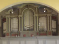 2 Manuale, 14 Ranks, 12 Register 1914 erbaut von Gebr. Dinse (D, Berlin) während des 1. Weltkriegs Zwangsabgabe der Prospektpfeifen - Ersatz durch Zinkpfeifen 1924 Einbau eines elektrischen Gebläses 1991 neue Farbfassung des Gehäuses - der Rest der Orgel ist original erhalten Kegelladen mit pneumatische Spiel- und Registertraktur |