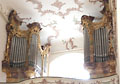 2 Manuale, ca. 14 Ranks, 12 Register 1914 erbaut im Gehäuse von 1754 durch Willibals Siemann (D, Regensburg) - dieser firmierte damals noch unter seinem Lehrmeister Martin Binder, der 1804 starb ? restauriert durch Drewes Chlup (D, Regensburg) Bälgchenladen mit pneumatischer Spiel- und Registertraktur, 1 freie Kombination, 4 feste Kombinationen (p, mf, f, Tutti); Stimmung: a' = 427 Hz bei 15°C |
