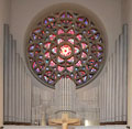 3 Manuale, 69 Ranks, 53 Register (+ 5 Ext. + 10 Tr.) 1940-1944 erbaut von Willibald Siemann (D, München und Regensburg) - wegen Kriegsschäden und Erlöschens der Firma nicht vollendet 1948 Reparatur und Umbau durch Michael Weise (D, Plattling) 1961 Bau einer Portalorgel ("Chororgel") durch Friedrich Meier 1985 Umbau und neuer 4-manualiger Spieltisch durch ? 2018 Renovierung, Umbau im Sinne der Rückführung auf den Ursprungszustand der Hauptorgel, neue Verkabelung und neuer fahrbarer Spieltisch durch Mühleisen (D, Leonberg) ca. 85% des Pfeifenwerks wurden erhalten, jedoch teilweise umgestellt Hauptorgel: Kegelladen mit elektropneumatischer Spieltraktur, Chororgel: Kegelladen mit Einzeltonsteuerung, elektrische Spiel- und Registertraktur mit unbegrenzeten Setzerkombinationen à 3.000 Setzer auf 60 Ebenen Jedes Werk kann jedem Manual frei zugeordnet werden, das Hauptwerk in ('-Lage, die anderen in 16'-, 8'- und 4'-Lage (Sub / Super); frei programmierbare Koppeln. Angaben in der Dispo zeigen die initiale Manualzuordnung Vorgängerorgeln: 1695 erste Erwähnung einer Orgel 1698-1699 Neubau mit 9 Registern durch Wolfgang Ludwig Stützle (D, Alfdorf) 1809 Verkauf an die Kirche in Unter-Hambach und Ankauf der Orgel aus der Rottenburger Martinskirche 1873 Neubau mit 26 Register durch Schäfer (D, Heilbronn) |