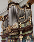 3 Manuale, 40 Ranks, 31 Register 1756 erbaut mit 31 Registern von Matthias Schreiber (D, Glückstadt) später diverse, teils gravierende Umbauten ? technischer Neubau im alten Gehäuse unter Wiederverwendung von 6 noch erhaltenen Originalregistern von 1756 durch Weigle 2015 Generalüberholung, Umdisponierung, Erneuerung der elektrischen Anlage und neuer Spieltisch von Rudolf von Beckerath (D, Hamburg) Elektrische Spiel- und Registertraktur (HW, OW und Pedal auch mit mechanischer Spieltraktur) mit 10.000 Setzerkombinationen |