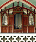 2 Manuale, 16 Ranks, 14 Register 1880 erbaut von Rudolf Haupt (D, Ostercappeln) 1904 Umsetzung ins neu gebaute Querhaus 1917 Zwangsabgabe der Prospektpfeifen zu Kriegszwecken 1947 Installation eines elektrischen Gebläses 1981 Renovierung durch Alfred Führer (D, Wilhelmshaven) 2001-2002 grundlegende Restaurierung und Umsetzung in die Mitte der Empore durch Martin Cladders (D, Badbergen) - alle Original-Register sind erhalten Schleifladen mit mechanischer Spiel- und Registertraktur |