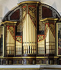 1 Manual, 6 Ranks, 6 Register, 252 Pfeifen 1589 erbaut von Daniel Meyer (D, Göttingen) zwischenzeitlich Umbauten 1966-1967 Restaurierung durch Wilhelm Rühle (D, Moritzburg) – einige verlorengegangene Register mussten rekonstruiert werdfen (Vorbild: Compenius-Orgel von 1612 auf Schloss Frederiksborg, DK) Mechanische Spiel- und registertraktur, mitteltönige Stimmung, a' = 476,5 Hz bei 15°C |
