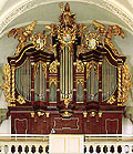 2 Manuale, 29 Ranks, 22 Register 1875 Neubau mit 22 Registern auf 2 Manualen und Pedal in das alte Gehäuse durch Weigle (D, Echterdingen) 1966-1968 Instandsetzung und Aufhellen der der Disposition bei gleichbleibender Registerzahl durch Skudlik (D, Kloster Schöntal) Vorgängerorgel 1697 erbaut durch Johann Hoffmann (D, Würzburg) |