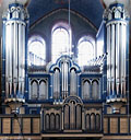 3 Manuale, 70 Ranks, 47 Register 1972 erbaut im Gehäuse von 1880 nach Plänen von Peter Bares durch E.F. Walcker (D, Ludwigsburg) 2018-2019 Renovierung und Umbau ohne Dispositions- und Intonationsänderung durch Klais (D, Bonn), dabei Auslagerung einiger großer Pfeifen und Schlagwerke in neue separate Seitengehäuse, um dringend benötigten Platz im Gehäuse zu schaffen für Wartung und Stimmung, außerdem Einbau einer modernen Setzeranlage und Umbau / Optimierung der Traktur Außerdem ohne Werkszuordnung: Schlagzeugmaschine ("Trömmelsche") und Glocken als Sequenzer mit diversen vordefinierten Rhythmen, + Tastenfessel für jedes Manual Schleifladen mit mechanischer Spieltraktur und elektrischer Registertraktur Vorgängerorgel: 1880 erbaut mit 2 Manualen von Gebr. Breidenfeld (D, Trier) |