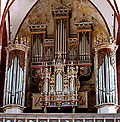 3 Manuale, 65 Ranks, 38 Register, ca. 2.600 Pfeifen 1580 erbaut durch Hans Scherer d.Ä. (D, Hamburg) unter Verwendung älteren Materials - erhalten ist nur das Rückpositivgehäuse im 18. und 19. Jahrhundert verschiedene Umbauten 1940 Renovierung und Erweiterung um die beiden Pedaltürme durch Emil Hammer (D, Hannover) Die Orgel soll bis 2017 möglichst auf ihren Ursprungszustand restauriert werden. 270 Pfeifen von Scherer sind noch erhalten. Die Quelle nennt keine Zunge im Hauptwerk! |