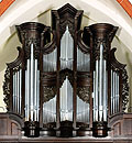 2 Manuale, 26 Ranks, 24 Register 1750 erbaut von Johann Niclas Stumm (D, Sulzbach) 1891 Umbau durch Gebr. Oberlinger (D, Windesheim) 1917 Zwangsabgabe der Prospektpfeifen zu Kriegszwecken 1935 Umbau durch C.F. Steinmeyer (D, Oettingen), dabei Umsetzung auf neue Südempore vor 1968: Umbau durch Oberlinger 2008-2010 denkmalgerechte Restaurierung auf den Ursprungszustand durch Rainer Müller (D, Merxheim) |
