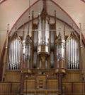 2 Manuale, 36 Ranks, 26 Register 1856 erbaut von Friedrich Hermann Lütkemüller ca. 1900 Neubau des Magazinbalgs Anfang des 20. Jh. Einbau eines Schwellkastens für das 2. Manual und zusätzlicher Pedalregister durch ? 1956 Umdisponierung und Erweiterung durch Barnim Grüneberg (D, Greifswald) 1989 Einbau neuer Zungen durch Voigt (D, Bad Liebenwerda) (?) 1995 neue Prospektpfeifen durch Voigt (?) 2023-2024 Restaurierung durch Wegscheider (D, Dresden) Schleifladen mit mechanischer Spiel- und Registretraktur |