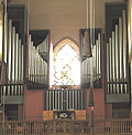 3 Manuale, 64 Ranks, 46 Register, 3.164 Pfeifen 1892 erbaut von G.F. Steinmeyer (D, Oettingen) - erhaltene Register durch * gekennzeichnet 1963 technischer Neubau unter Wiederverwendung einiger alter Register durch Steinmeyer 2007 Renovierung und Erweiterung um ein Auxiliaire durch Thomas Jann (D, Laberweinting) Die Register des Auxiliaires können separat auf jedem Manual und Pedal registriert werden |