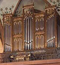 3 Manuale, 53 Ranks, 44 Register (+ 2 Ext.)? 2001 Neubau durch Karl Göckel (D, Mühlhausen-Rettigheim) unter Wiederverwendung einer Pfeifen der Vorgängerorgel 2017 Renovierung der Orgel nach Kirchen-Innenraumsanierung 2018 Erweiterung um eine Kontrabombarde durch ? Schleif- und Kegelladen mit mechanischer Spieltraktur und elektrischer Registertraktur mit 1.024-fachen Setzerkombinationen Vorgängerorgel: 1877 erbaut mit 25 Registern auf 2 Manualen von Gebr. Keller (D, Limburg) im 1. Weltkrieg Zwangsabgabe der Prospektpfeifen zu Kriegszwecken Die Orgel wurde immer anfälliger und in den 1970er Jahren zunehmend unspielbar, weshalb man sich zu einem Neubau entschloss |