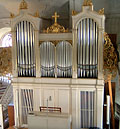 2 Manuale, 28 Ranks, 21 Register (+ 1 Ext.), 1.416 Pfeifen 1882 erbaut mit 12 Registern auf 1 Manual und Pedal von Johann Wolf (D, Bayreuth) 1984 Restaurierung und Erweiterung durch Bosch (D, Kassel) Schleifladen (2. Manual und Pedal) und Kegelladen (HW) mit mechanischer Spiel- und Registertraktur |
