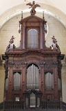 2 Manuale, 46 Ranks, 27 Register 1792-1796 erbaut von Juan de Bono und Manuel Barrera y Carmona 1861 Umsetzung vom Chor auf die Empore durch ? 1965 Restaurierung durch ? 1983 grundlegende Restaurierung durch Gerhard Grenzing (E, Barcelona) 201? Abbau der Orgel wegen Kirchenrenovierung und Einlagerung durch Grenzing und Óscar Laguna (E, Burgos) 2021 Wiederaufbau des Gehäuses mit Prospektpfeifen und Umzug der eingelagerten Orgel zu Óscar Laguna (E, Burgos) - wann und wie die Orgel wiederaufgebaut wird, ist unklar |