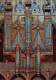 3 Manuale, 90 Ranks, 68 Register (+ 2 Ext.) 1620-1623 Neubau mit 24 Registern im alten Gehäuse und Hinzufügung eines Rückpositivs und Pedals durch Pierre le Pescheur 1661 Erweiterung des Pedals durch Louis de Burcourt 1769 Erweiterung auf 32 Register auf 3 Manualen durch Charles Dallery 1833-1838 Reparatur und Erweiterung auf 42 Register durch John Abbey (GB), nachdem die Orgel fast unspielbar geworden war 1887-1889 Erweiterung, Einbau eines Récit und Umbau durch Aristide Cavaillé-Coll (F, Paris) nach ersten Bombardierungen im 1. Weltkrieg Auslagerung der Orgel ins Château d'Eu 1936 Renovierung und Beseitigung der Schäden durch den 1. Weltkrieg und die Auslagerung sowie Erweiterung auf 52 Register durch Roethinger 1939 Ausbau der Orgel als Schutz vor den deutschen Truppen im 2. Weltkrieg 1946 Wiederaufbau der Orgel mit Veränderungen im Hauptwerk und Pedal durch Roethinger 1965-1967 Überholung durch Roethinger, dabei Einbau von Mixturen; die Bombarde 32' wird leider nicht rekonstruiert 2022-2024 Restaurierung und Erweiterung durch Denis Lacorre und Muhleisen (F, Strasbourg) Mechanische Spieltraktur (Barker für Pos, G.O., Récit und Pedal), Grand Choeur und Echo elektrisch, mechanische und pneumatische Registertraktur (Doppeltraktur) mit Setzerkombinationen Vorgängerorgel: 1429 erste Orgel von ? 1549-1852 beträchtliche Erweiterung durch ? - bis heute ist das Hauptgehäuse von 1429/1549 erhalten |