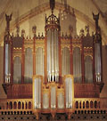 4 Manuale, 81 Ranks, 57 Register 1994-1997 erbaut im historischen Gehäuse von 1895 von Jean-Loup Boisseau und Bertrand Cattiaux (F, Vienne) Vorgängerorgeln: 1497 erste Erwähnung einer kleinen Orgel 1536 Restaurierung durch André de la Couldre 1561 Plünderung der Kirche und zerstörung der orgel während des Religionskriegs 1565 Bau einer Chororgel, kurz darauf Ankauf einer großen orgel aus Nantes 1597 Verkauf der großen Orgel an die Abteil von Saint-Maixent zur Finanzierung einer neuen großen Orgel (1598) 1626 Wiederaufbau der Orgel nach einem Sturmschaden, der das Dach wegriss 1661 Umbau durch Le Vasseur 1768 Reparatur durch ? 1895 Neubau der großen Orgel durch Anneessens (B) In den folgenden Jahrzehnten mehrere Reparaturen, u.A. von Robert Boisseau - die Orgel war von schlechter Qualität 1941 Teilweise Zerstörung im 2. Weltkrieg 1948 Rekonstruktion und Elektrifizierung durch Boisseau 1965 letztes Konzert; die Orgel verfällt mangels Qualität immer mehr, bis sie 1990 stillgelegt wurde |