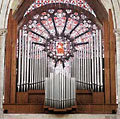 3 Manuale, 89 Ranks, 61 Register (+ 6 Ext.), ca. 5.000 Pfeifen 1956 erbaut von Gonzalez (F) Im Januar 2017 hat ein Orkan die große Fensterrosette eingedrückt. Die Trümmer zerstörten die Orgel zu 2/3. Nun soll die Orgel repariert (und ggf. stark umgebaut) werden |