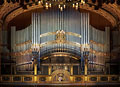 4 Manuale, 87 Ranks, 71 Register (+ 4 Tr. + 1 Sonst.) 2018 erbaut von Klais (D, Bonn) unter Mitwirkung von AerisOrgona (H) im alten Gehäuse als Rekonstruktion der originalen Voit-Orgel von 1907 Es wurden einige Register und Teile von Pfeifen aus der Vorgängerorgel sowie aus anderen Orgeln (Fertöd, Hl. Kreuz, Györ, Rathaussaal und Péter Takács (Pannonhalma)) verwendet Membran- und Taschenladen mit elektropneumatischer Spiel- und Registertraktur, mit 3 freien Kombinationen, Touchscreen für Setzerkombinationen und elektronische Erweiterungen inkl. MIDI, Generalkoppel Vorgängerorgeln: 1905-1907 Bau der ersten Orgel von Voit & Söhne (D, Karslruhe) 1963 Totalabbau der Orgel, das Gehäuse blieb erhalten 1967 Neubau im alten Gehäuse durch Walcker (D, Ludwigsburg) 1994 Umbau durch Aquincum Orgonagyár (H) |