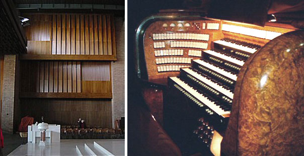 Spieltisch und Orgel; im Hintergrund der Pseudo-Prospekt Photo: © Martin Doering