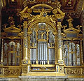 2 Manuale, 29 Ranks, 28 Register 1597-1599 erbaut von Luca Blasi 1675-1676 Umbau durch Giuseppe Testa 1731 Restaurierung und Erweiterung (2. Manual, Pedalumfang) durch Ugo Annibale Traeri und Celestino Testa 1741, 1817 und 1852 Renovierungen und geringfügige Erweiterungen durch Lorenzo Alari, Philip Priori und Pier Luigi Sabatini 1934 Umbau durch Francesco Morettini - dabei durchgreifende Eingriffe am Originalmaterial, die zur Folge hatten, dass die Orgel bald unspielbar wurde 1984 Restaurierung und weitestgehende Wiederherstellung des Zustandes des 18. Jahrhunderts durch Bartolomeo Formentelli Das erste Manual ist im Wesentlichen die Erweiterung (Positiv) von Testa und Traeri, das 2. Manual die Orgel von Blasi. Ohne Manualzuordnung: + Usignolo (Nachtigall) Die Lateransbasilika zwei weitere separate Orgeln im Chorraum: Rechts mit 54 Ranks / 46 Registern auf 3 Manualen und links mit 32 Ranks / 24 Registern auf 2 Manualen (beide Morettini, 1886) |
