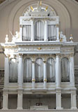 Schiffsförmiger Lüster und Blick zur Orgel Photo: © Martin Doering