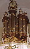 2 Manuale, 29 Ranks, 22 Register erbaut (evtl. unter Wiederverwendung älteren Materials) von Jacobus Galtus van Hagerbeer für die Sint-Bavokerk 1791 erbaut unter Wiederverwendung der kleinen Orgel der Sint-Bavokerk von Hendrik Hermanus Hess 1808 Erneuerung der Trompetenregister durch Johan Caspar Friedrichs 1815 Dispositionsänderung durch Friedrichs (?) 1862 Umbau des Brustwerks zum Oberwerk und Dispositionsänderung durch H. Knipscheer 1886 und 1904 Umbau durch G.A.D.J. Gabry 1058 erste Restaurierungsphase durch Gebr. van Vulpen 1985 Restaurierung durch van Vulpen 1994 Erneuerung von Octaaf 8 und 4' sowie Trompet 8' im Pedal durch van Vulpen 1997 Zungen der Hauptwerkstrompete erneuert von van Vulpen Mit * markierte Register stamman noch von Hess oder vorher (vor 1791); + Tremulant für das ganze Werk |