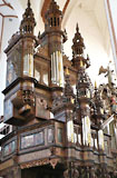 3 Manuale, 61 Ranks, 45 Register 2012-2013 Rekonstruktion des Rückpositivs der ursprünglichen Orgel von 1703 im teilweise erhaltenen Gehäuse von 1618/1703 durch Kristian Wegscheider (D, Dresden) und Szymon Januszkiewic (PL) 2015 Restaurierung / Rekonstruktion des Gehäuses 2016-2018 Rekonstruktion der restlichen Orgelwerke durch Wegscheider und Januszkiewic Vorgängerorgeln: 1616-1618 erste Orgel von Merten Friese 1697 Erweiterung um zwei Cimbelsterne durch Georg Nitrowski 1703 Umbau und Erweiterung sowie Bau eines Pedalgehäuses durch Tobias Lehmann 1757 Umbau durch Rudolph Dahlitz 1872 geringfügige Dispositionsänderung durch Karl Schuricht 1914 Umbau, Umdisponierung und Pneumatisierung durch Otto Heinrichsdorf (damals D, Danzig) 1943 Abbau und Einlagerung der Orgel während des 2. Weltkrieges 1960 teilweiser Wiederaufbau des Pedalbalkons und Prospekts mit einem pneumatischen Orgelwerk von Ryszard Plenikowski 2008 Beginn der Rekonstruktion der historischen Barockorgel |