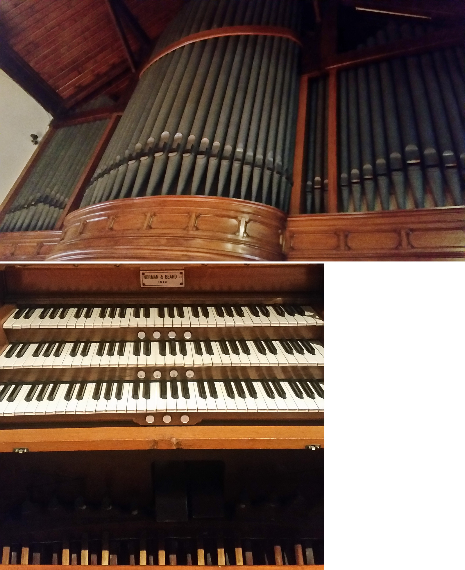 Dulciana | 8 | Open Diapason Small | 8 | Rohrflöte | 8 | Violone | 16 | |||||||||||||||