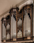 4 Manuale, 74 Ranks, 59 Register (+ 3 Ext. + 1 Tr.), 4.110 Pfeifen 1960 erbaut mit 54 Ranks / 43 Registern und 3.203 Pfeifen von Aeolian-Skinner (USA, Boston) - fast oder komplett erhaltene Register mit * markiert (z.T. 1994/2015 umintoniert) 1994 technischer Neubau unter Verwendung vieler Register der Aeolian-Skinner-Orgel durch Noack (USA, Georgetown) - dann 72 Ranks, 58 Register, 4.087 Pfeifen 1998 Ergänzung um eine Festival Trumpet auf der rückseitigen Empore durch Noack 2007 Erweiterung um eine 32'-Trombone (Ext.) im Epdal durch Noack 2015 Renovierung, gerungfügiger Umbau und Umintonation durch Noack |