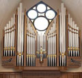 4 Manuale, ca. 65 Ranks, 54 Register (+ 5 Ext.? + 10 Tr. + 4 digitale Reg.) 1941 erbaut mit 27 Ranks auf 2 Manualen und Pedal von W.W. Kimball (USA) 1976 Umbau / technischer Neubau und Erweiterung auf 59 Ranks / IV durch Schantz (USA, Orrville) 2001 Umbau durch Schudi 2024-2025 technischer Neubau unter Wiederverwendung restaurierter Kimball-Register durch Létourneau (CAN, Saint-Hyacinthe) Schleifladen mit elektrischer Spiel- und Registertraktur |