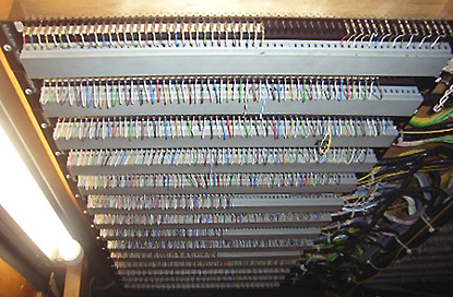 Die Bilder zeigen einen Teil der elektronischen Steuerung der 4.000 Setzerkombinationen mit Sequenzer