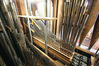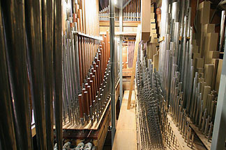 Und so sehen Orgeln hinter ihrem Prospekt aus, wenn man in ihre Pfeifenkammern schaut: |