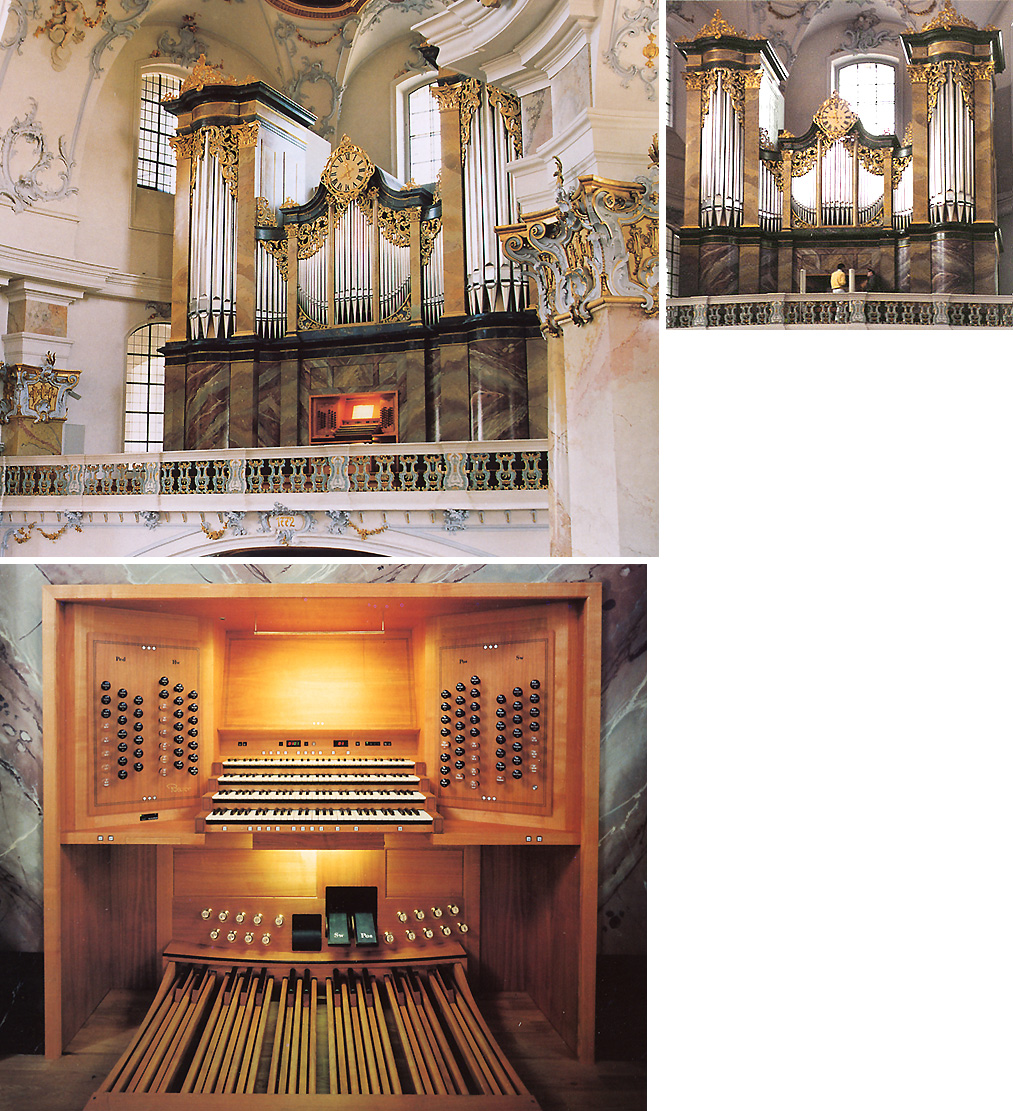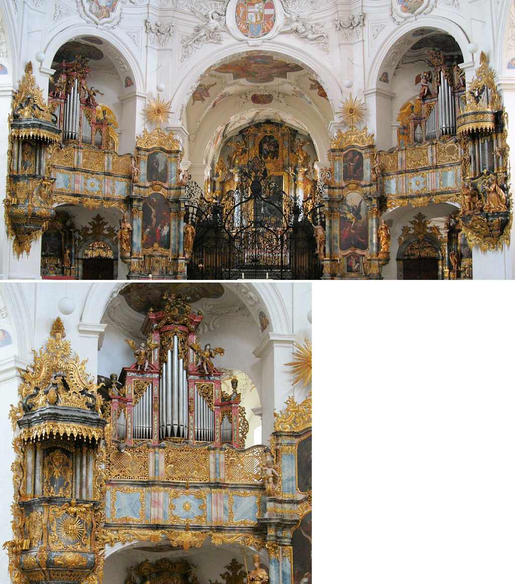 D, Füssen, St. Mang (main organ) Jäger 1753, Zeilhuber 1956 52 ranks, 38 registers 3 manuals |