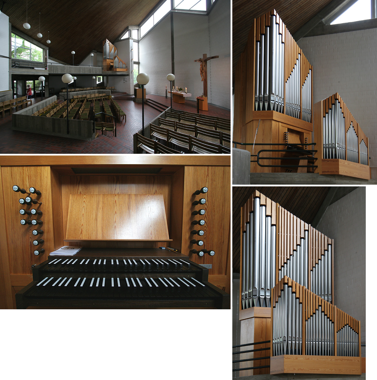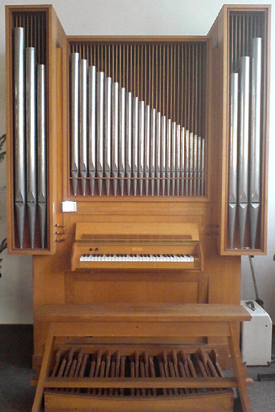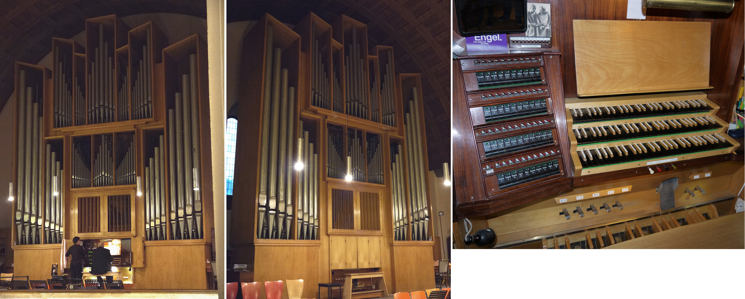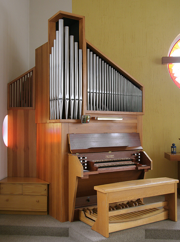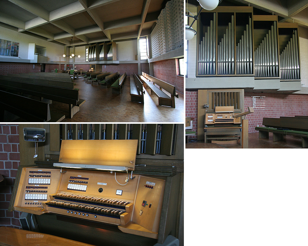 D, Berlin-Reinickendorf, Mary's Grace Church Karl Schuke 1971, Schuster 1996 14 ranks, 10 registers + 7 tr. 2 manuals |