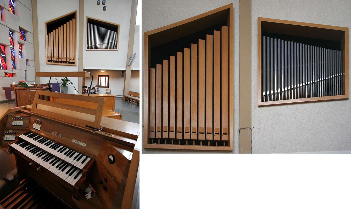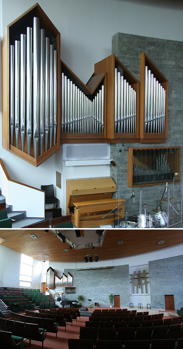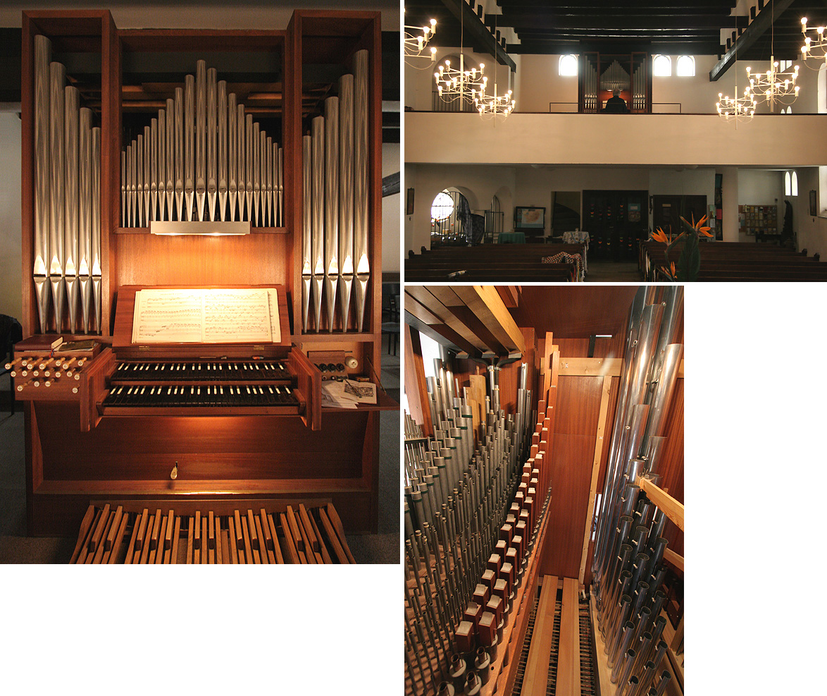 D, Berlin-Reinickendorf, Mary's Grace Church Karl Schuke 1971, Schuster 1996 14 ranks, 10 registers + 7 tr. 2 manuals |