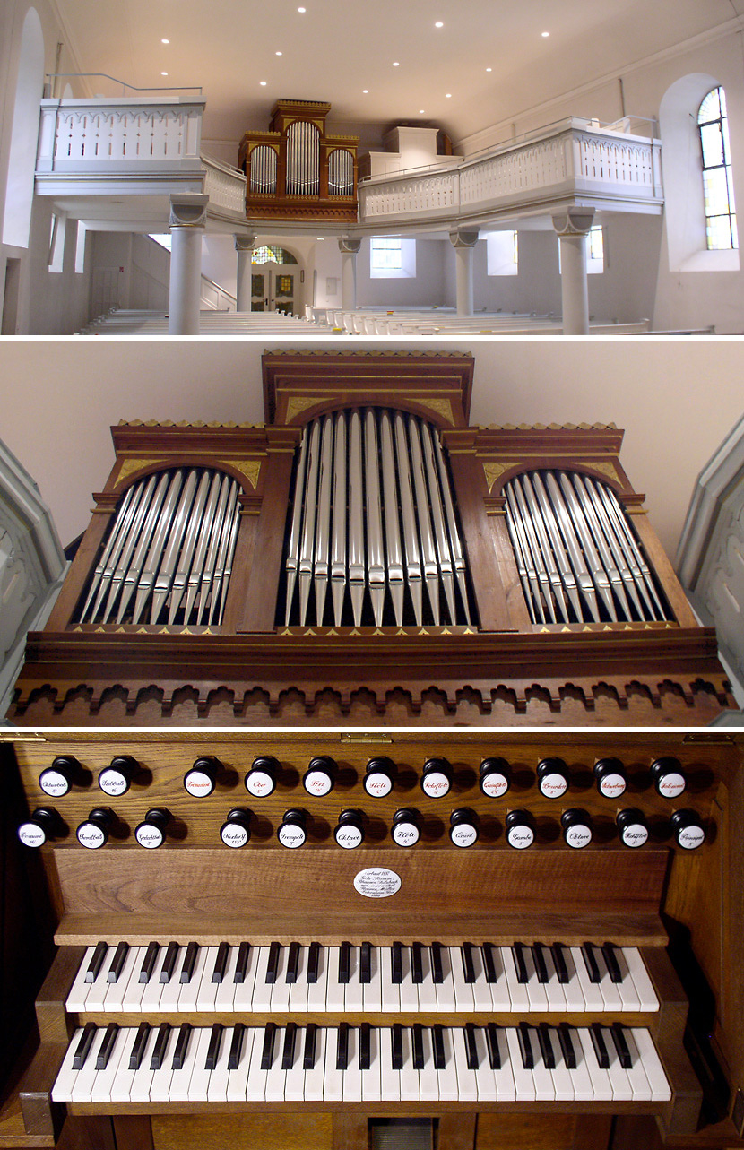 D, Ludweiler, Hugenot Church Stumm 1857, Oberlinger, ..., Müller 1998 24 Ranks, 22 registers 2 manuals |
