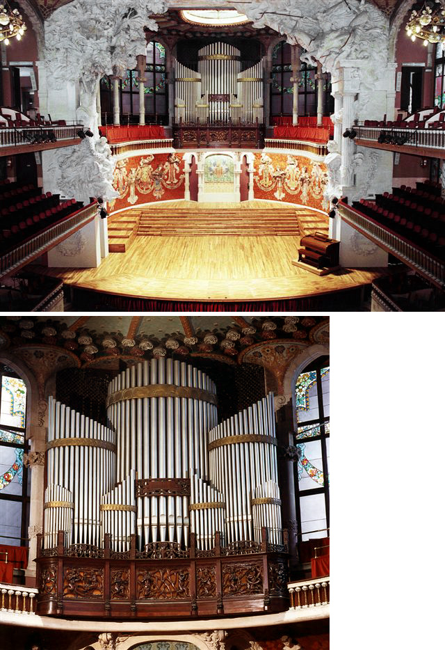 E, Barcelona, Palau de la Mùsica Catalana Walcker 1908, Grenzing 2003 68 ranks, 59 registers + 4 ext. 4 manuals |