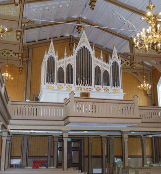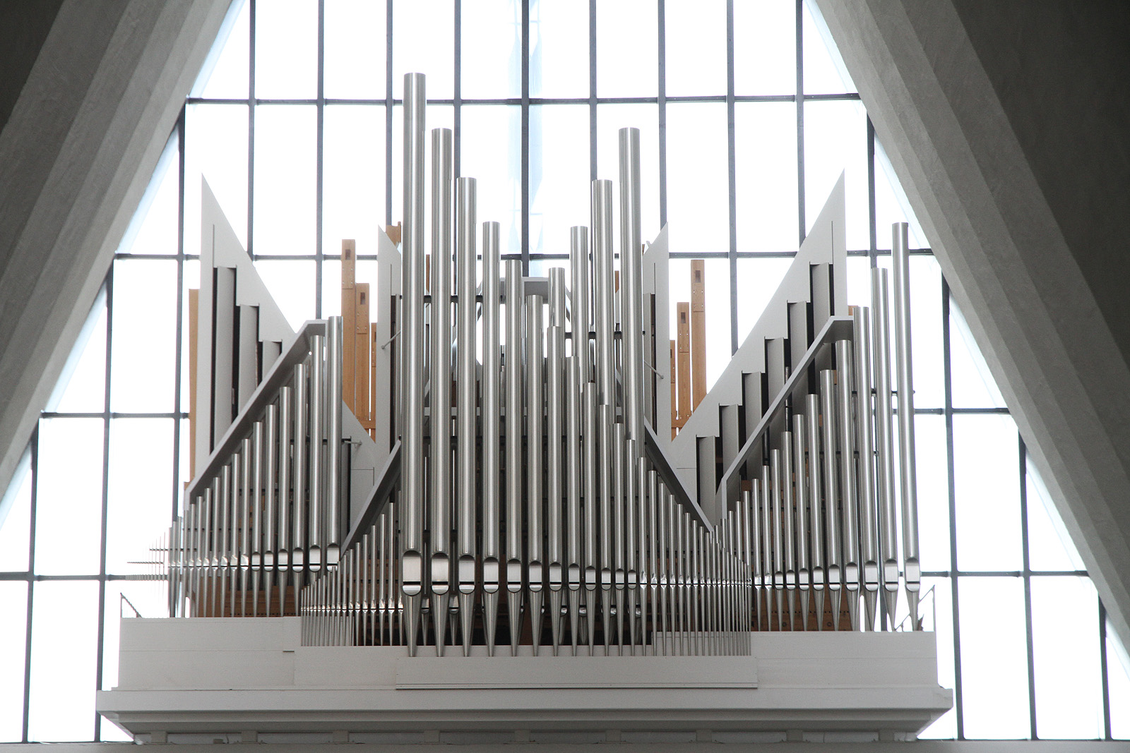 N, Tromsø, Ishavskatedralen Jensen 1863, Mühleisen 2017 52 Ranks, 42 registers (1 x 32') 3 manuals |