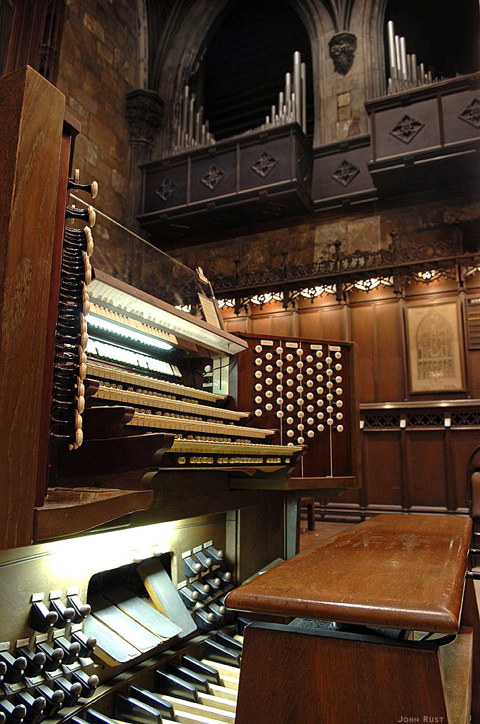 USA, New York City, St. Bartholomew's Episcopal Church Hutchings 1893, Skinner 1918-30, Aeolian-Skinner 1938-1971, Harris and others until now 228 ranks, 160 registers + 4 ext. + 8 tr. (5 x 32') 5 manuals |