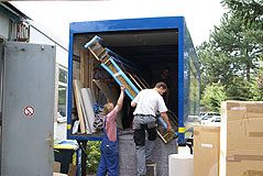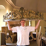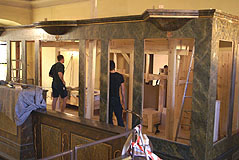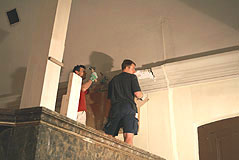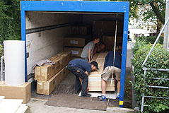 Unloading the organ parts | Storing the organ parts in the sanctuary |