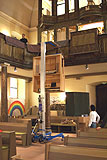 Now the organ has to be reassembled at its final destination just like it was at the workshop. Often the entire sanctuary has to serve as a storage place for days or even