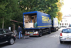weeks on end as thousands of parts first have to be unloaded and stored until, bit by bit, they are put together again. The following series of pictures shows the assembly of the new Schuke organ in the restored casing at the Johanniskirche (John's Church) at Frankfurt-Bornheim: |